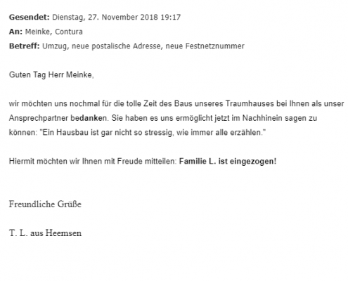 Hausübergabe (Bunlagow 92 in Martfeld)