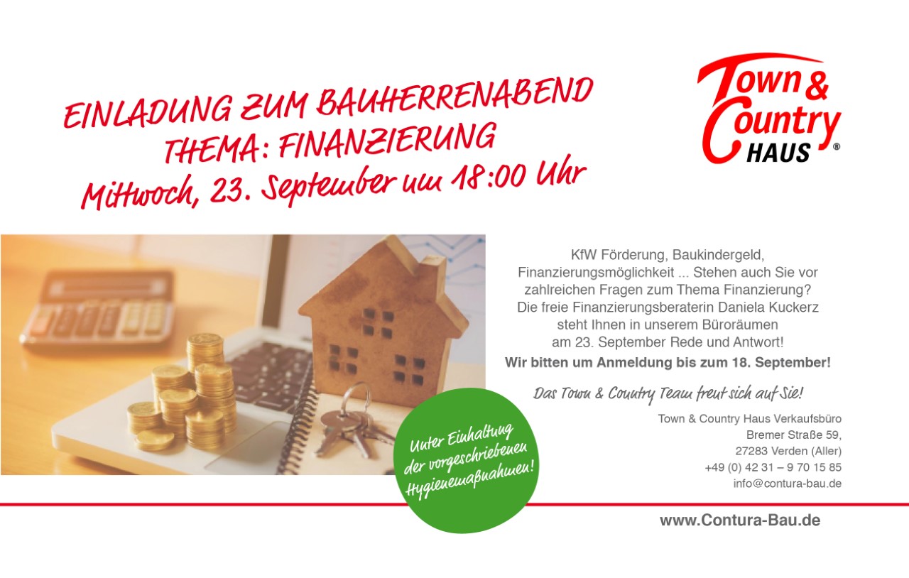 Das Thema lautet Finanzierung. Mittwoch 23.9. um 18 Uhr.