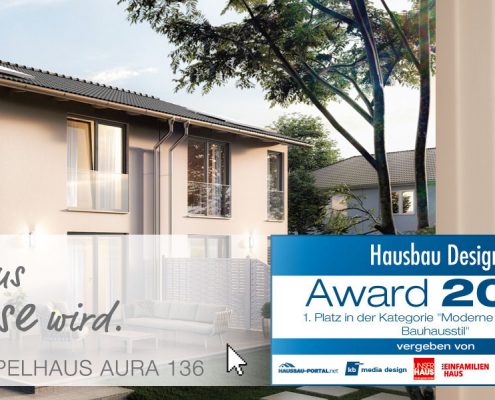 In gleich vier Kategorien war Town & Country Haus beim „HAUSBAU DESIGN AWARD 2017“, einem der renommiertesten Branchenwettbewerbe, nominiert. Als Sieger aus der Kategorie „moderne Häuser“ ging das Doppelhaus Aura 136 von Deutschlands richtungsweisender Massivhausmarke hervor. Damit wurde die Innovationsstärke und das zeitgemäße, kreative Design einmal mehr gewürdigt.