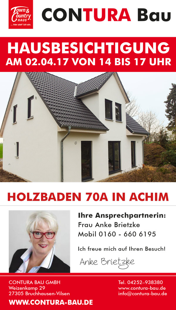 Wir haben an diesem Wochenende (02.04.) von 14 bis 17 Uhr eine Hausbesichtigung in Achim.