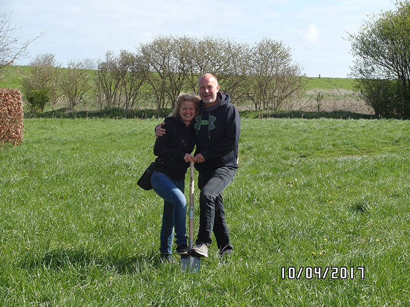 1. Spatenstich der Bauherren Groenhagen. Winkelbungalow 108 in Tettens.